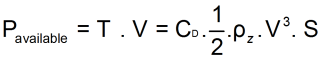 By multiplying the thrust equation by the speed and by taking into consideration the lift equation we obtain: