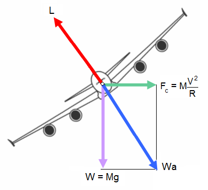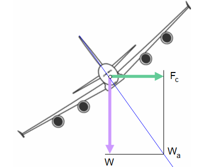 While turning at constant altitude, to avoid side slipping, the pilot uses the rudder. The weight perpendicular to the speed gives rise to the load factor. It is necessary to add the centrifugal force to the forces acting on the aircraft.