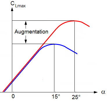 All the lift augmentation systems at the leading edge make it possible to increase the CL max by increasing the angle of attack.