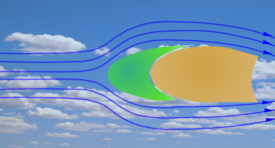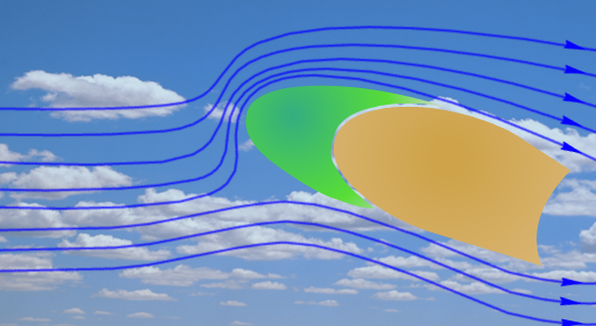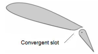 While passing through the convergent channel, the airflow is accelerated on the lower surface towards the upper surface thus making it possible to limit the separations of the boundary layer where the angle of attack is high as well as on the rest of the aerofoil.
