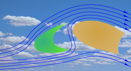 The circulation effect: The circulation of the downstream element increases the circulation of the upstream element thus improving its aerodynamic performance.