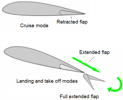 This flap affects the airflow on the lower surface and the upper surface of the aerofoil by modifying its shape without much increase in drag. The risk in separation of the boundary layer is however increased.
