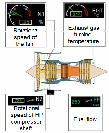 All the instruments which display the engine parameters in the cockpit receive the data collected by various sensors, probes, detectors or transmitters located on the engine.