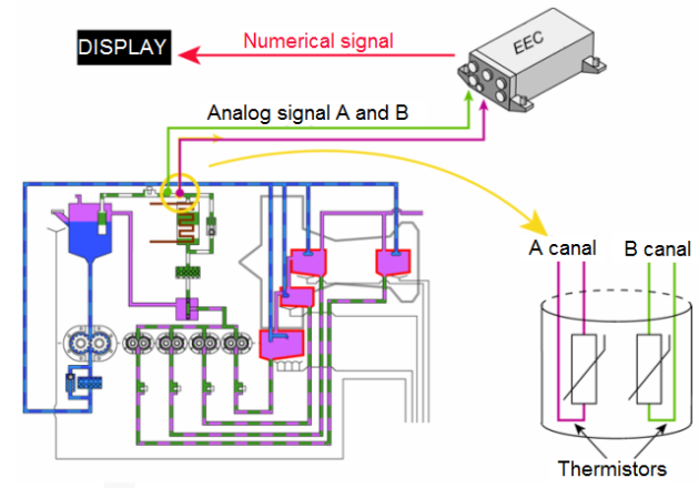 The electronic engine controller transforms the signal of average temperature into digital data sent to the engine parameters display system (ECAM or EICAS).