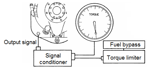 The major components of this system, illustrated in Figure, includes a torque ring containing strain gages (sometimes referred to as the torque transducer) and an externally mounted signal conditioner, which sends a corrected signal to the cockpit torquemeter.