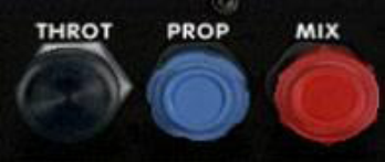 Aircraft with a constant-speed propeller also have a blue propeller control to adjust the propeller's rotation speed.